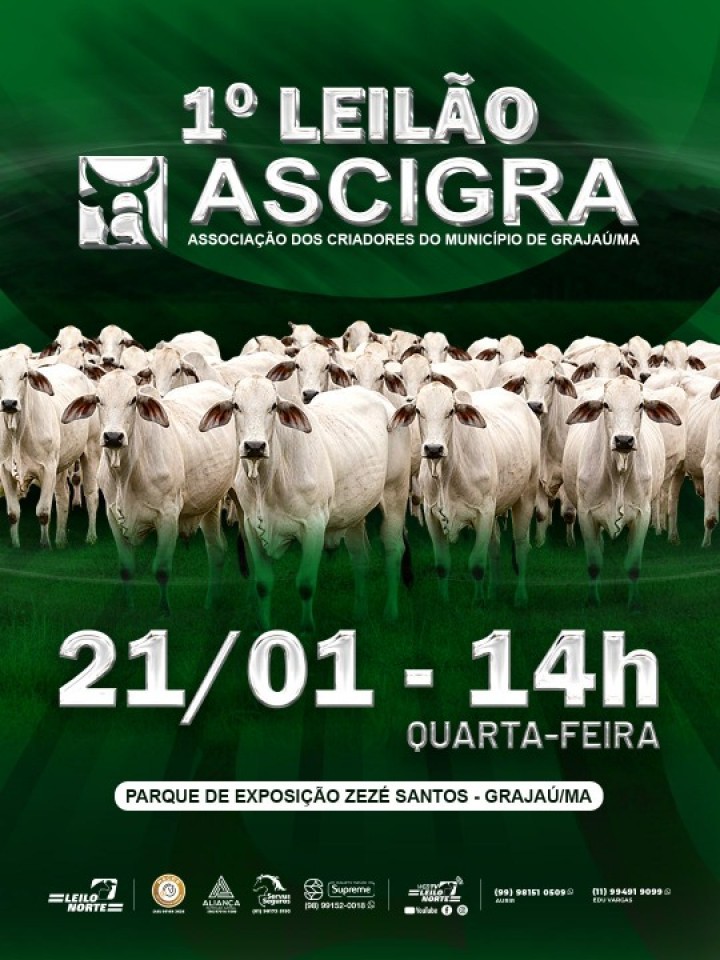 E TRANSMISSÃO AO VIVO POR INTERNET1° LEILÃO ASCIGRA - ASSOCIAÇÃO DOS CRIADORES DO MUNICÍPIO DE GRAJAÚ