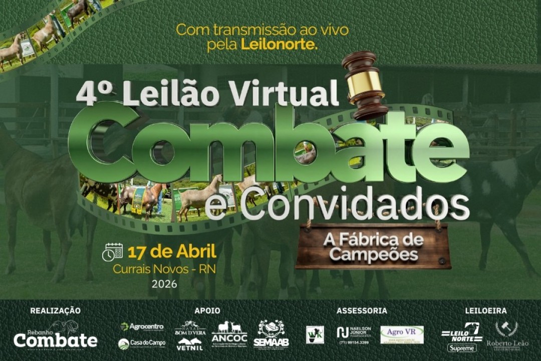 E TRANSMISSÃO AO VIVO POR INTERNET4º LEILÃO VIRTUAL COMBATE & CONVIDADOS - ASSESSORIA: NAELSON JUNIOR, AGRO VR & WILSON KARDEON